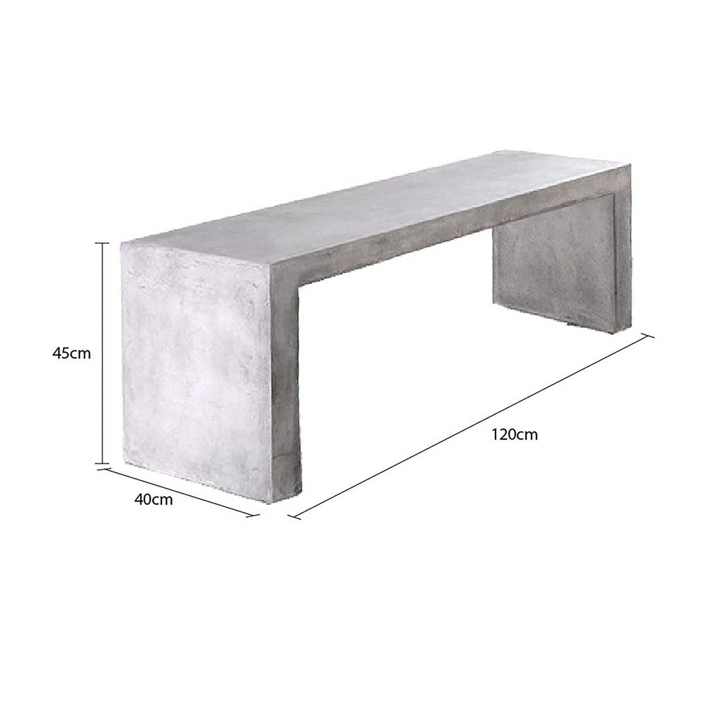 Zen Outdoor Concrete Bench 120 cm in Weathered Cement