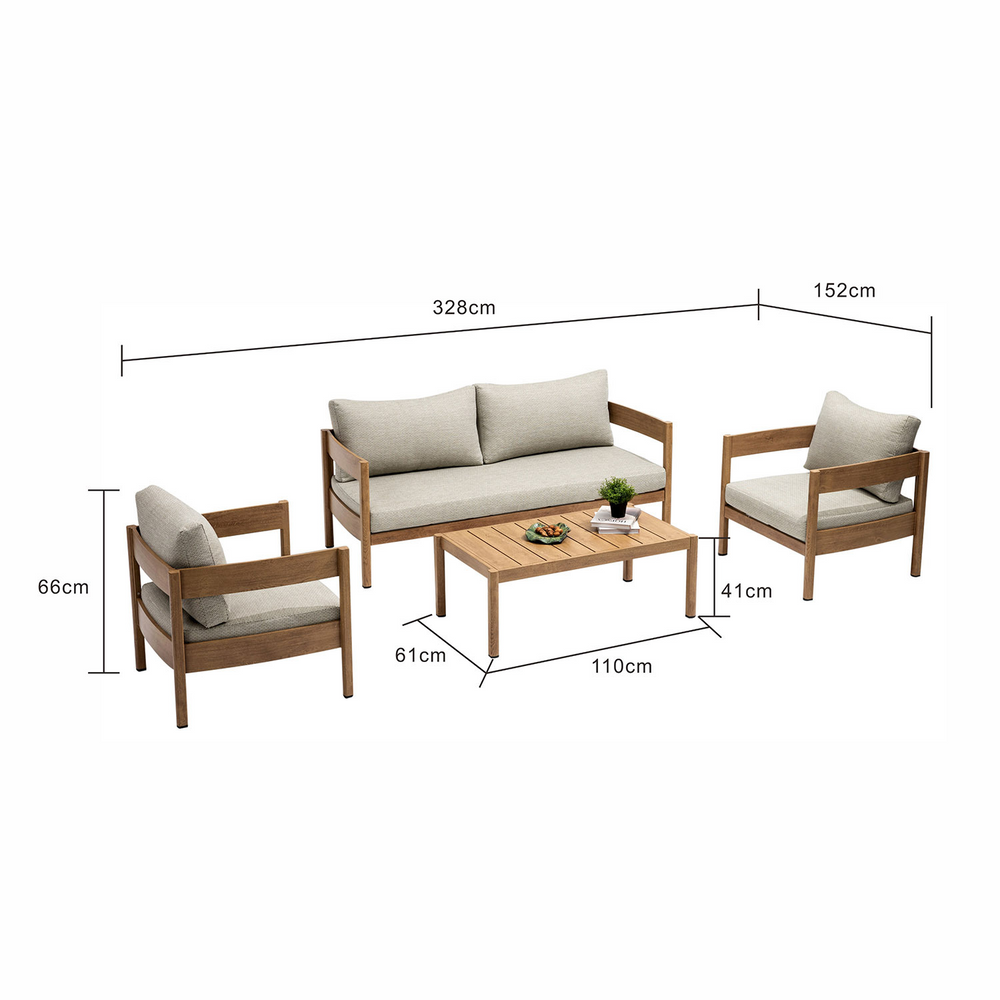 Fernlea 4 Seater Aluminium Outdoor Lounge Setting With Coffee Table 110 cm in Teak Look