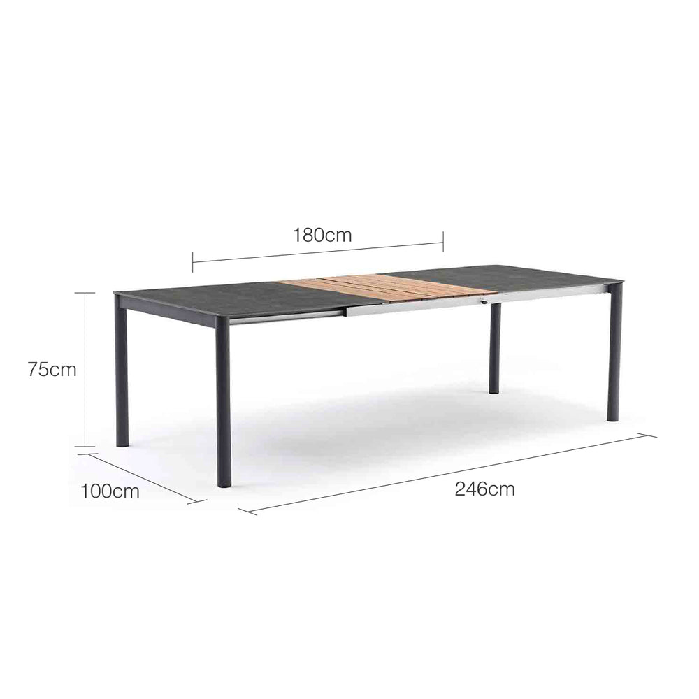 This is a clearance product. Presenting the Largo Extension Dining Table, a striking enhancement for any environment. Its extendable design seamlessly caters to gatherings ranging from 8 to 10 people, adapting effortlessly to different occasions. Crafted with robust Tiger® powder-coated Aluminium, this table guarantees durability and resilience against outdoor elements, ensuring suitability for both indoor and outdoor settings.