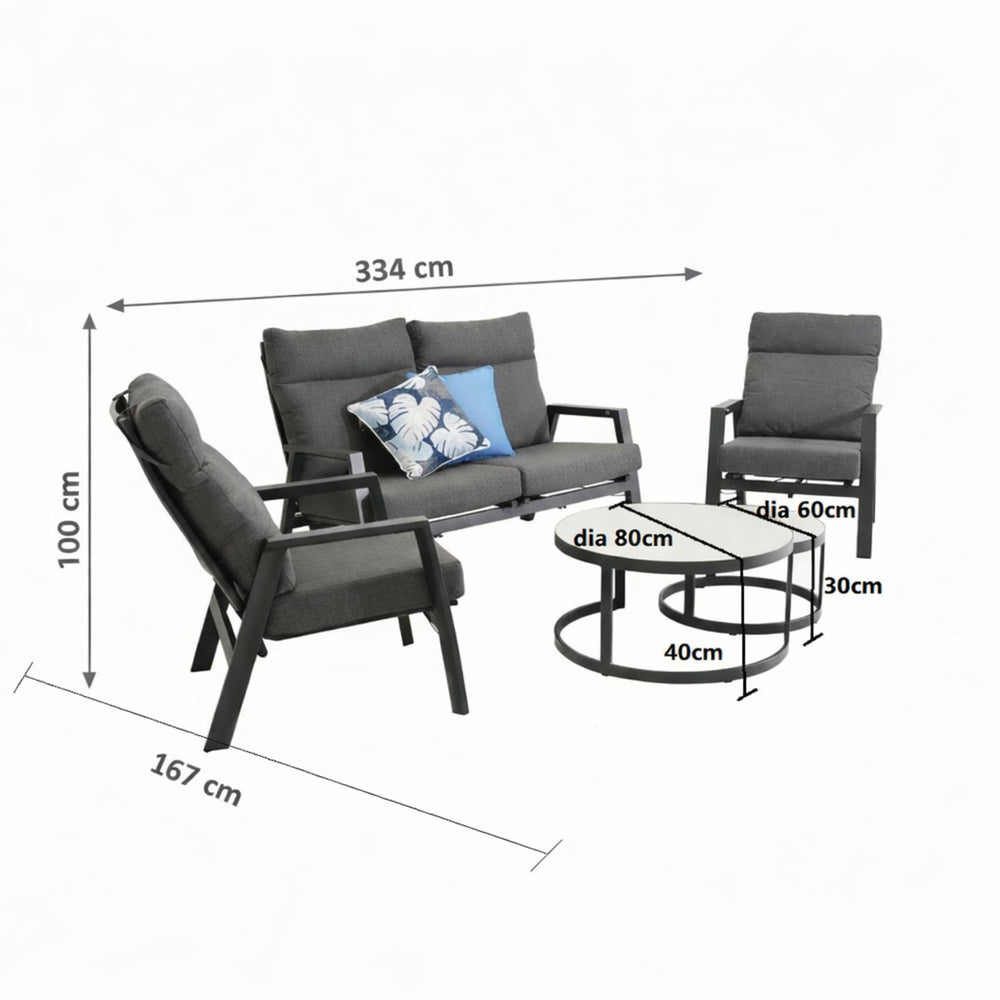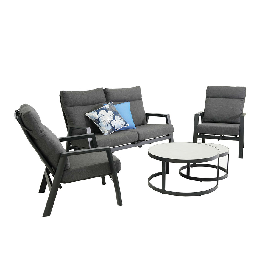 Hamilton 4 Seater Aluminium Outdoor Recliner Lounge With Ancona Coffee Table