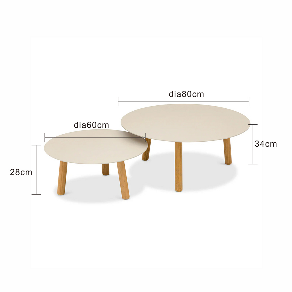 Milano Outdoor Aluminum and Teak Coffee Table Setting in Light Grey