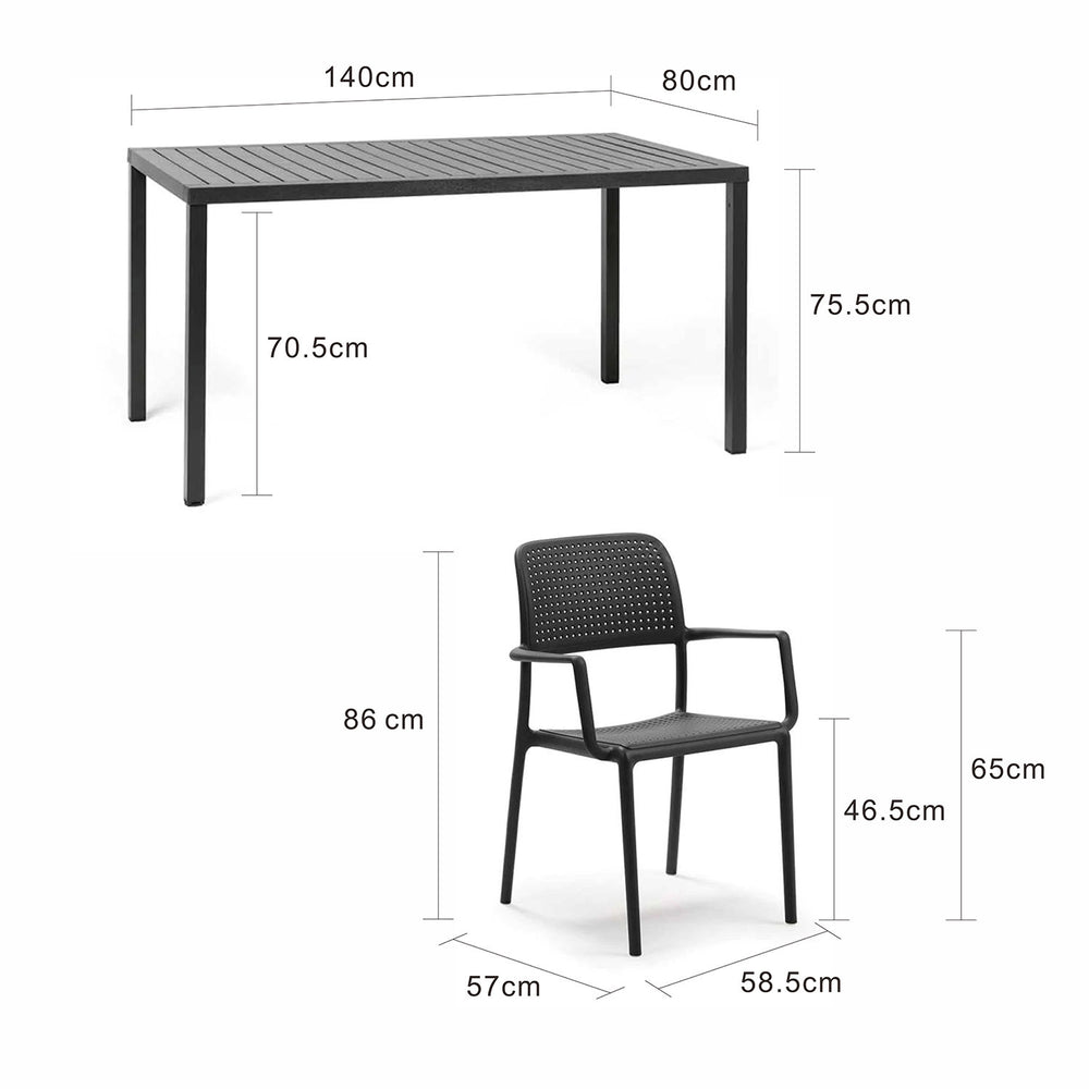 Nardi Cube 140 cm Table Bora Armchair Outdoor Dining Setting