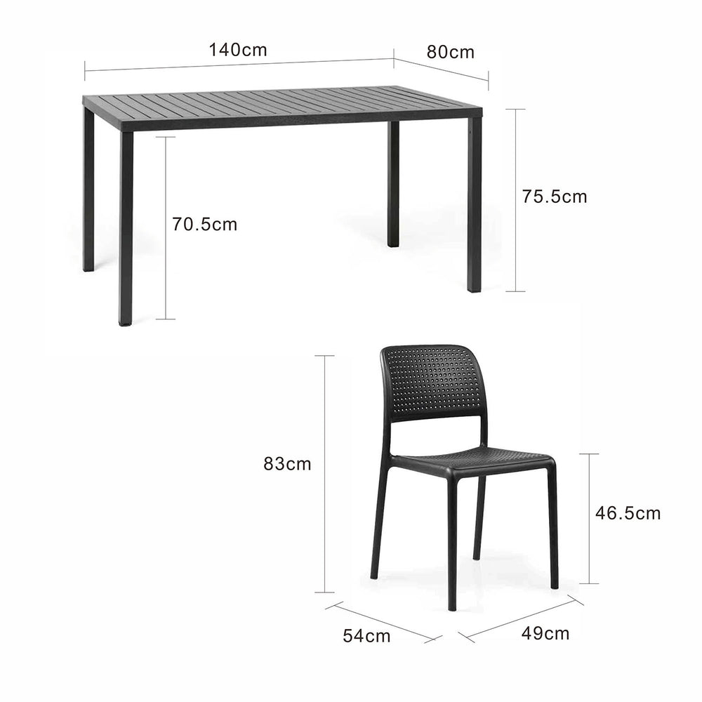Nardi Cube 140 cm Table Bora Armless Chair Outdoor Dining Setting