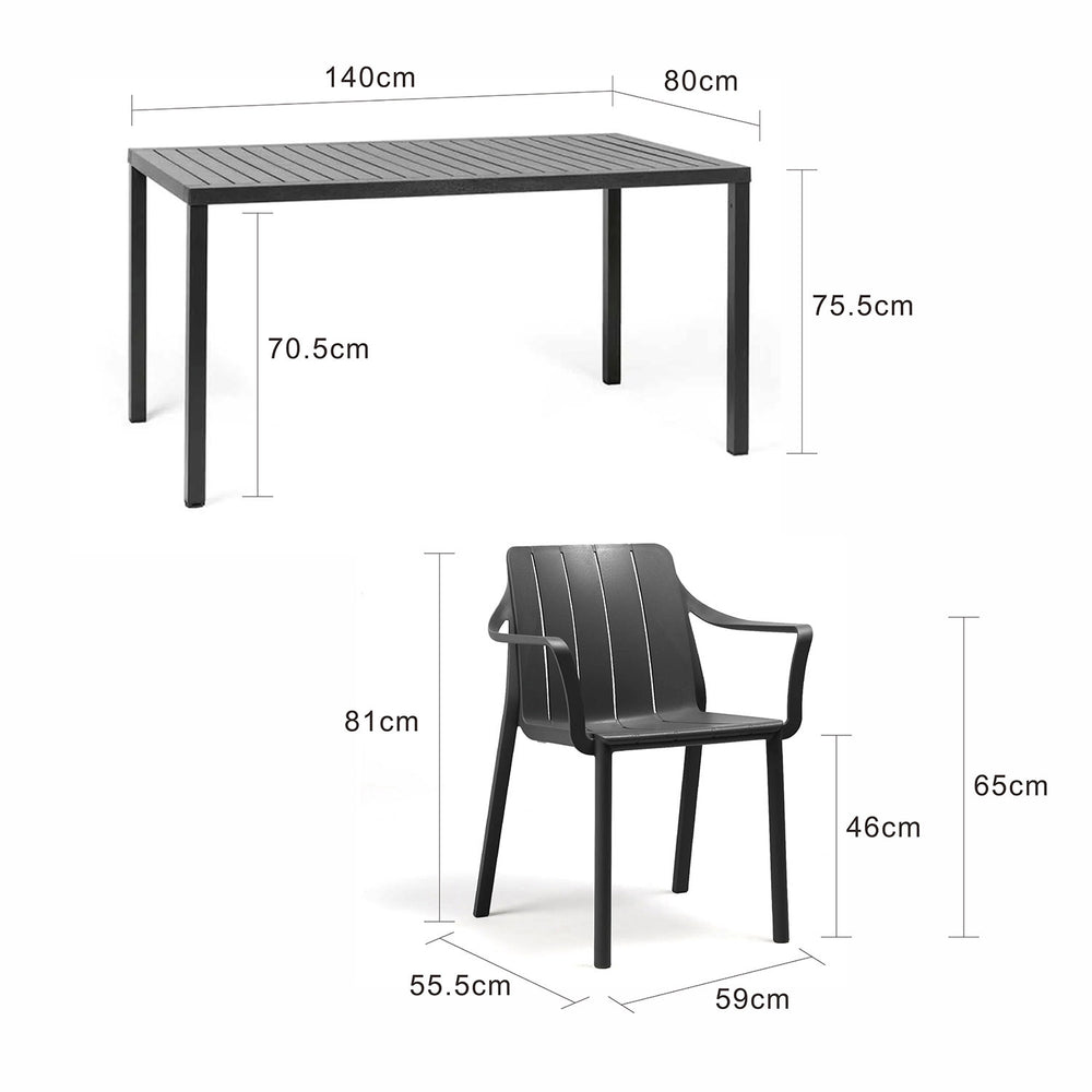 Nardi Cube 140 cm Table Tiberina Armchair Outdoor Dining Setting