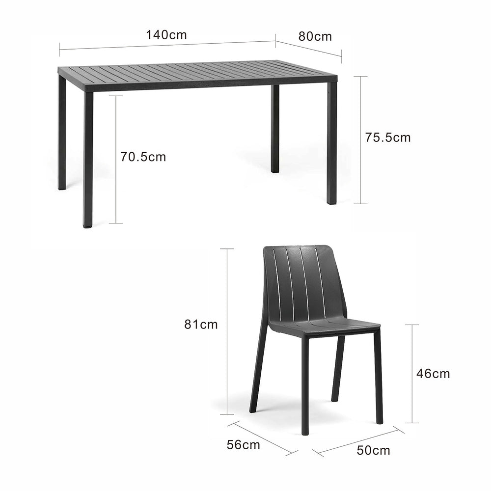 Nardi Cube 140 cm Table Tiberina Armless Chair Outdoor Dining Setting