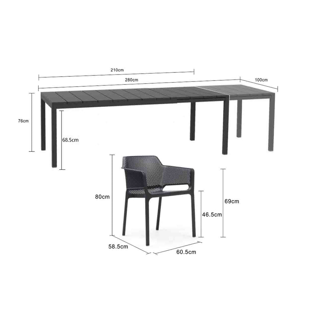 Nardi Rio Table Doga Armless Chair Outdoor Dining Setting