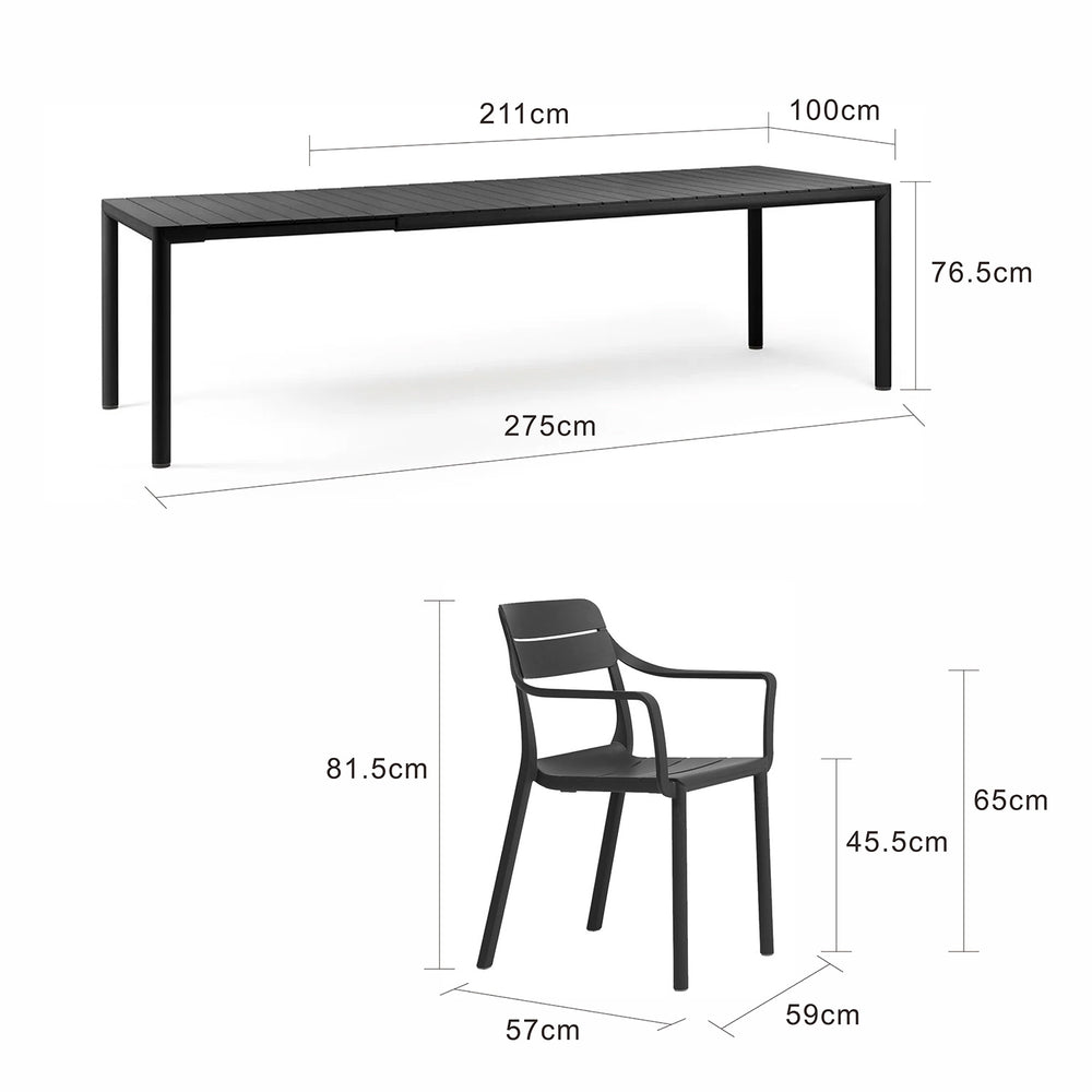 Nardi Tevere 211 CM Table Cassia Armchair Outdoor Dining Setting