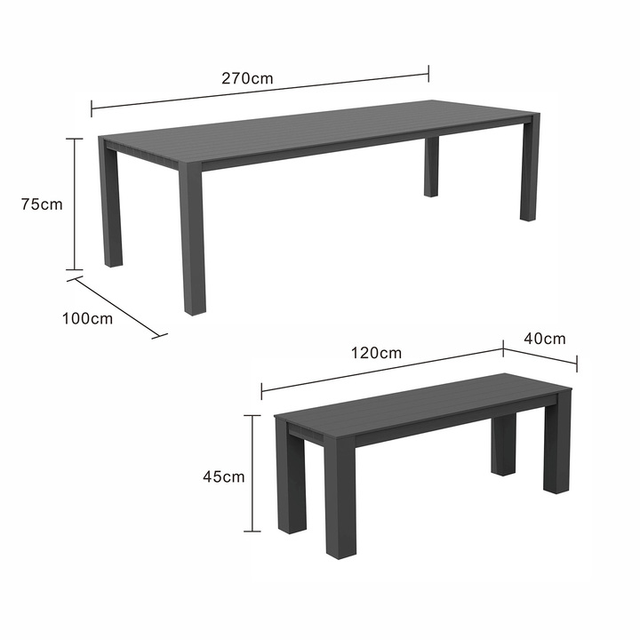 Vernon 270 cm Table Vernon 120 cm Bench Outdoor Dining Setting